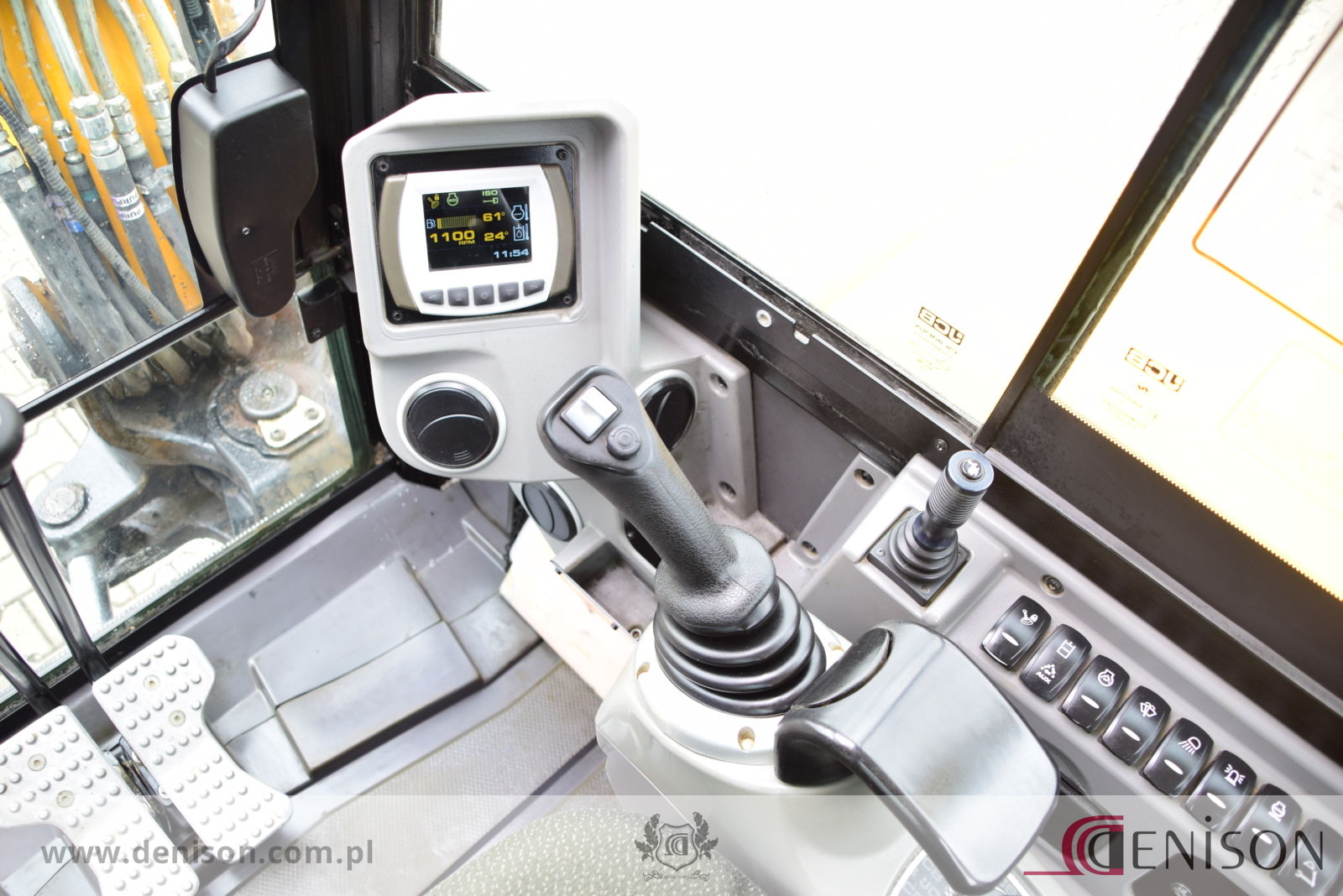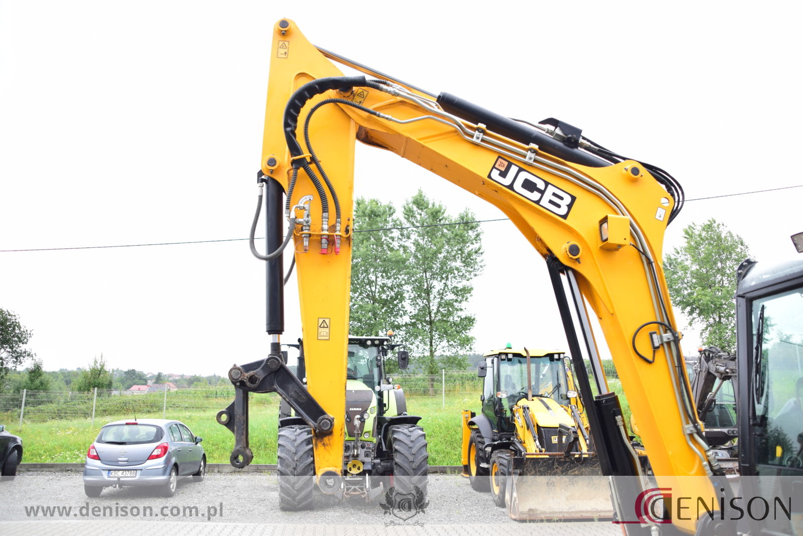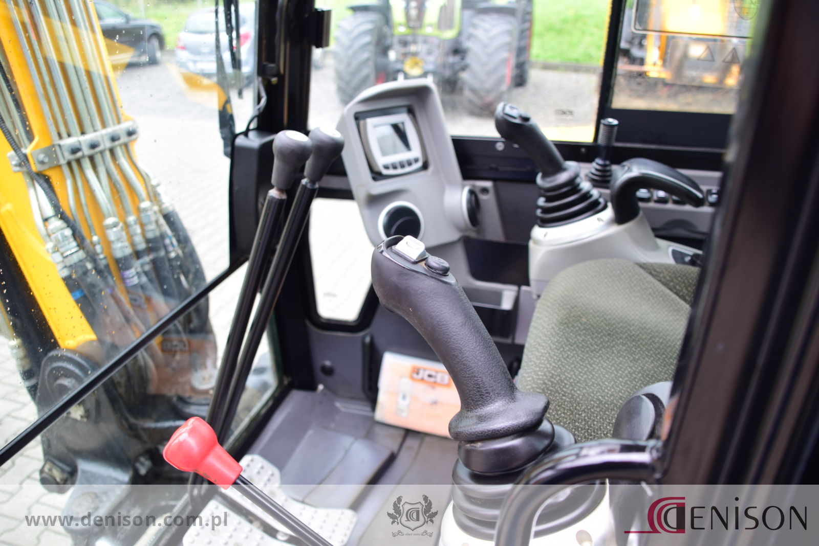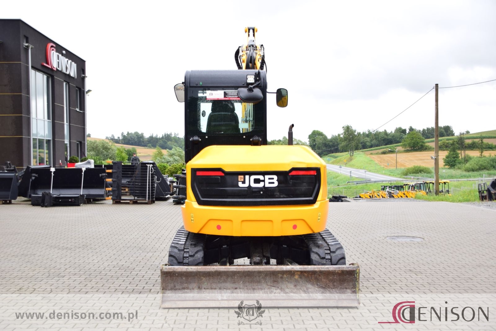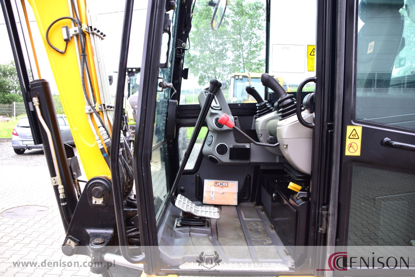 Koparka gąsienicowa JCB 67C-1 z kabiną zamkniętą i ogrzewaną, waga 6760 kg, gąsienice gumowe, lemiesz spycharkowy, podgrzewane siedzenie, dwie prędkości jazdy (wolna/szybka), 3 x instalacja hydrauliczna, przełącznik biegu jałowego typu “one touch”, oświetlenie robocze, łyzka koparkowa.
